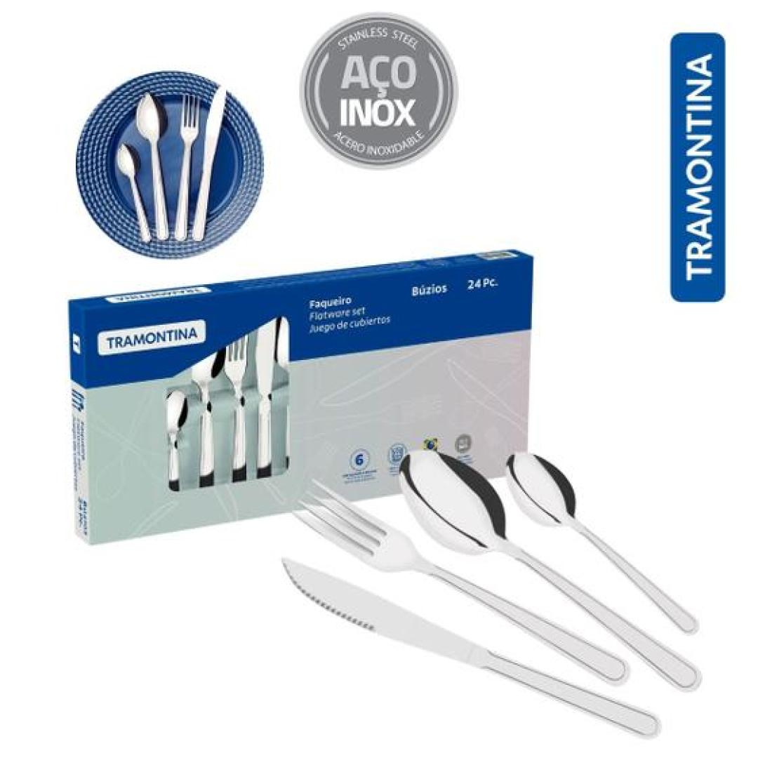 Jogo De Talheres Tramontina Colher Faca Garfo 24 Peças Búzios Inox Tramontina