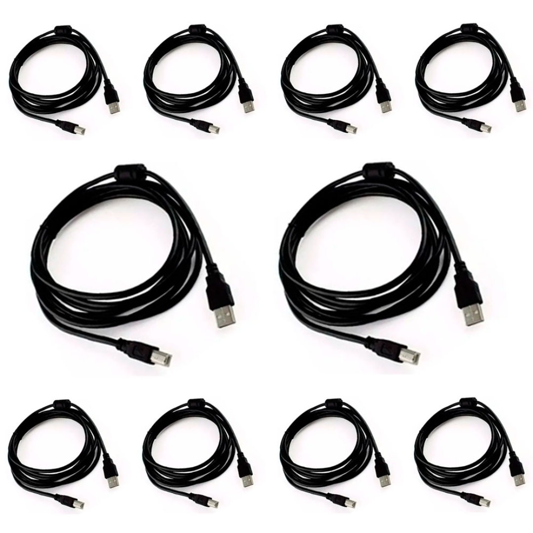 Kit 10 Cabos de Impressora com 1,5 M USB 2.0 Dupla Blindagem Universal
