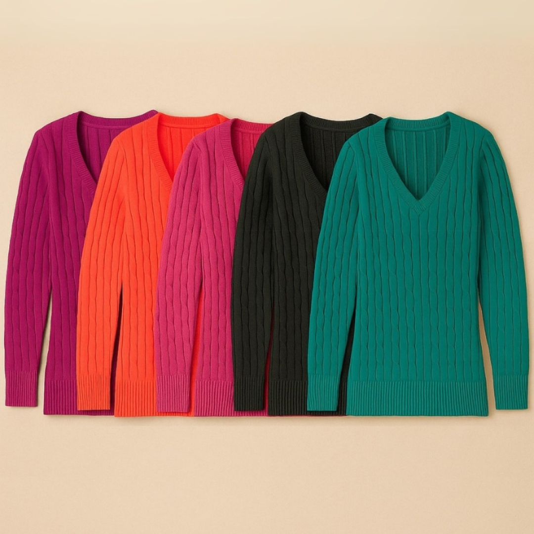 há 1 mêsKit 3 Blusa Suéter Tricô Manga Longa Gola V Fio Trançadinha Canelada Moda Feminina Inverno