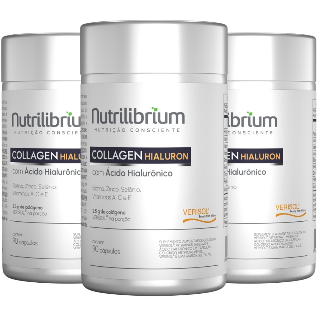 Kit 3x Colágeno Verisol com Ácido Hialurônico 270 Caps – 3 Meses Nutrilibrium