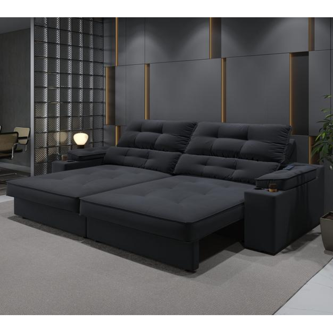 Sofá Santiago 2,30m (L) com Carregador USB e Porta Copos Retrátil e Reclinável – Cialar